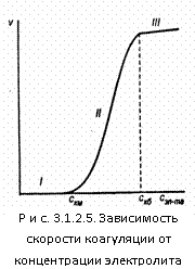Зависимость скорости коагуляции от концентрации электролита представлена на рис. 3.1.2.5.