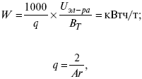 Расход электрической энергии на 1 тонну произведенного продукта определяется так:
