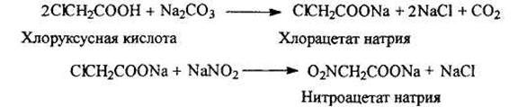 Нитрометан обычно получают из хлоруксусной кислоты по следующей схеме: