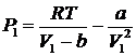 = (0,08206·400)/(1,840–0,215)–38,72/1,8402 = 8,763 атм;